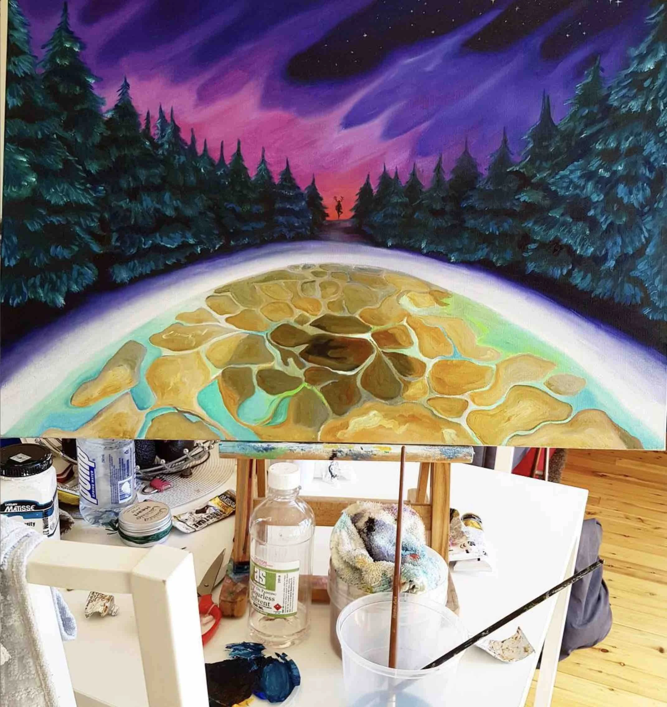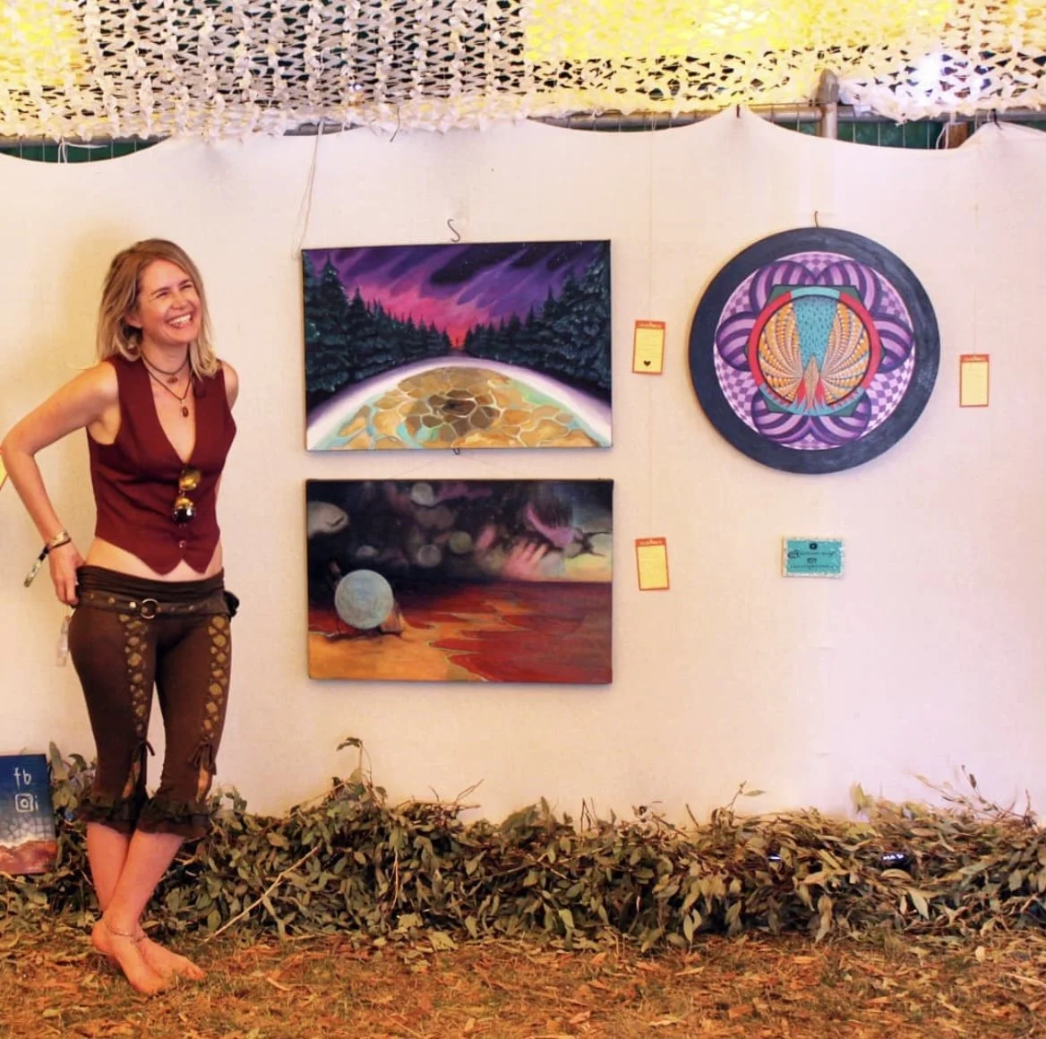 SpacegirlDesigns Mentor is Lara, a finished Artist, with two degrees in Fine Art, she most recently graduating from National Art School 2015, with a BFA. Lara has been creating professionally for 16 years. She worked for Cork and Chroma in Sydney teaching art classes to groups of up to 40 adults. She also tutored children on weekends using various art mediums. Lara was apart of the Australian Bush Doof festival scene for many years performing live art and creating installations.